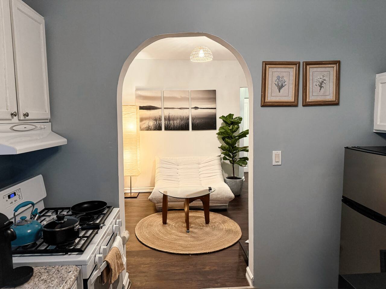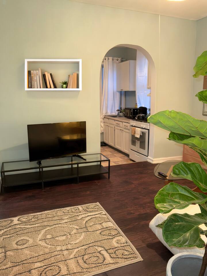 Step into a calming, Japanese-inspired sanctuary right in the heart of Jersey City. Just a 5-minute walk to the Journal Square PATH station and a quick 15-minute ride to Manhattan, this beautifully redesigned 1-bedroom, 1-bath hideaway combines the simplicity of Zen decor with urban convenience. Perfect for couples, remote workers, creatives, or small families, the apartment features 2 plush queen beds, a peaceful open-concept layout, dedicated workspace, high-speed Wi-Fi, and thoughtful design details that create a grounding, peaceful vibe. ☕️ Start your morning with a cup of matcha or coffee in the cozy living area. Cook in a fully equipped kitchen, unwind with a book, or explore the nearby cafes, parks, and restaurants. This is a prime location at a great rate—not the Four Seasons, but clean, charming, and full of character. You get great bang for your buck in one of the most connected neighborhoods near NYC. 🛏 Sleeping Arrangements (Sleeps 4) ◉ Primary Bedroom: 2 Queen Beds with soft linens, room-darkening shades, storage, and minimalistic decor 🍽 Living & Dining ◉ Open-concept layout with cozy lounge seating ◉ Smart TV for your entertainment ◉ A strong Wi-Fi ◉ Dining table for 2–3 🍳 Kitchen ◉ Full kitchen with oven, stovetop, fridge, and essentials ◉ Pots, pans, cooking oils, salt/pepper, dishware & utensils ◉ Electric kettle for tea lovers 🚿 Bathroom ◉ Clean and functional with bathtub & hot water ◉ Towels, hair dryer, and basic toiletries included